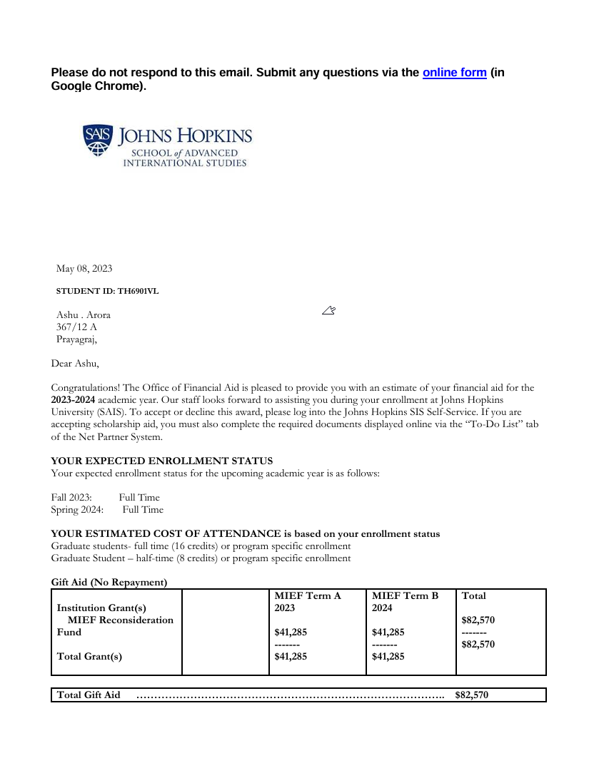 The ₹80 Lakh Scholarship Letter that changed my Life